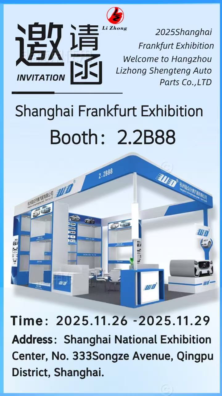 Hangzhou Lizhong Shengteng Automotive Parts Co., Ltd. is verheugd om deel te nemen aan de Shanghai Frankfurt Exhibition 2025 van 26 tot 29 november in het Shanghai National Exhibition Centre (stand 2.2B88). We zullen onze hoogwaardige, betrouwbare auto-onderdelen demonstreren voor wereldwijde OEM's en aftermarket-partners.